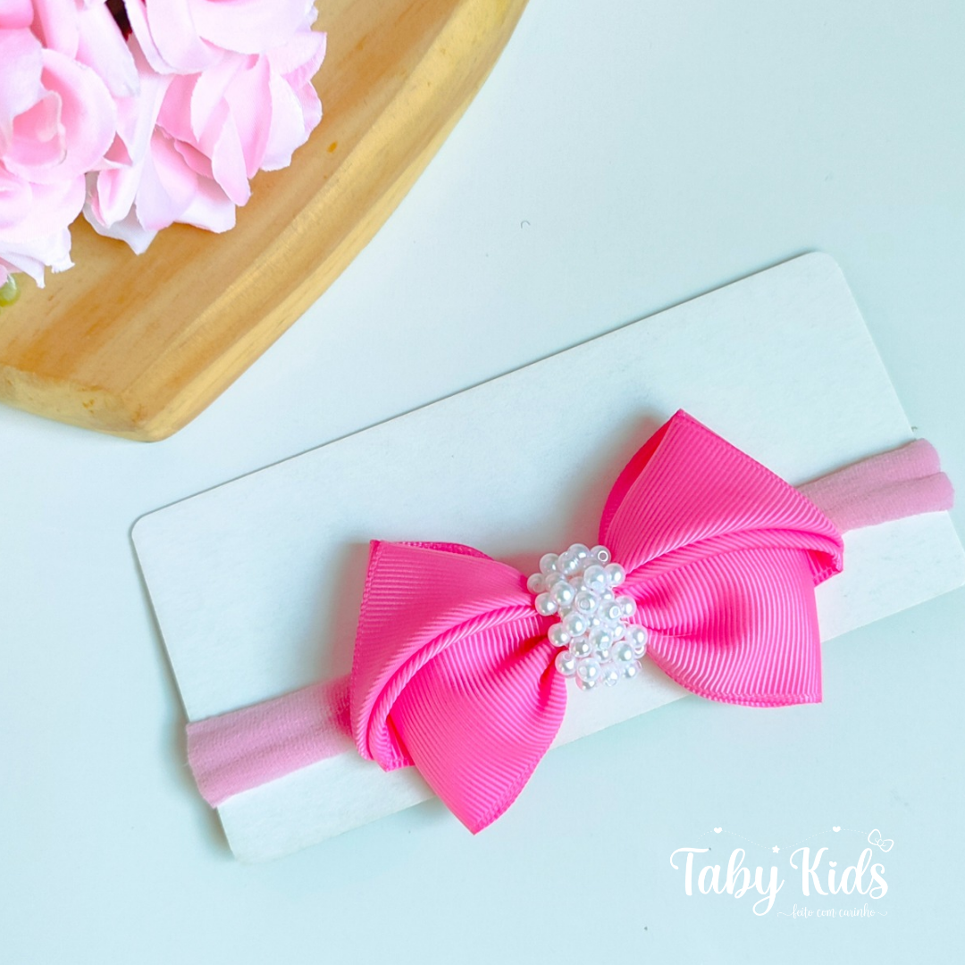 Laço LUXO com chuva de pérolas brancas medindo aproximadamente 9cm.