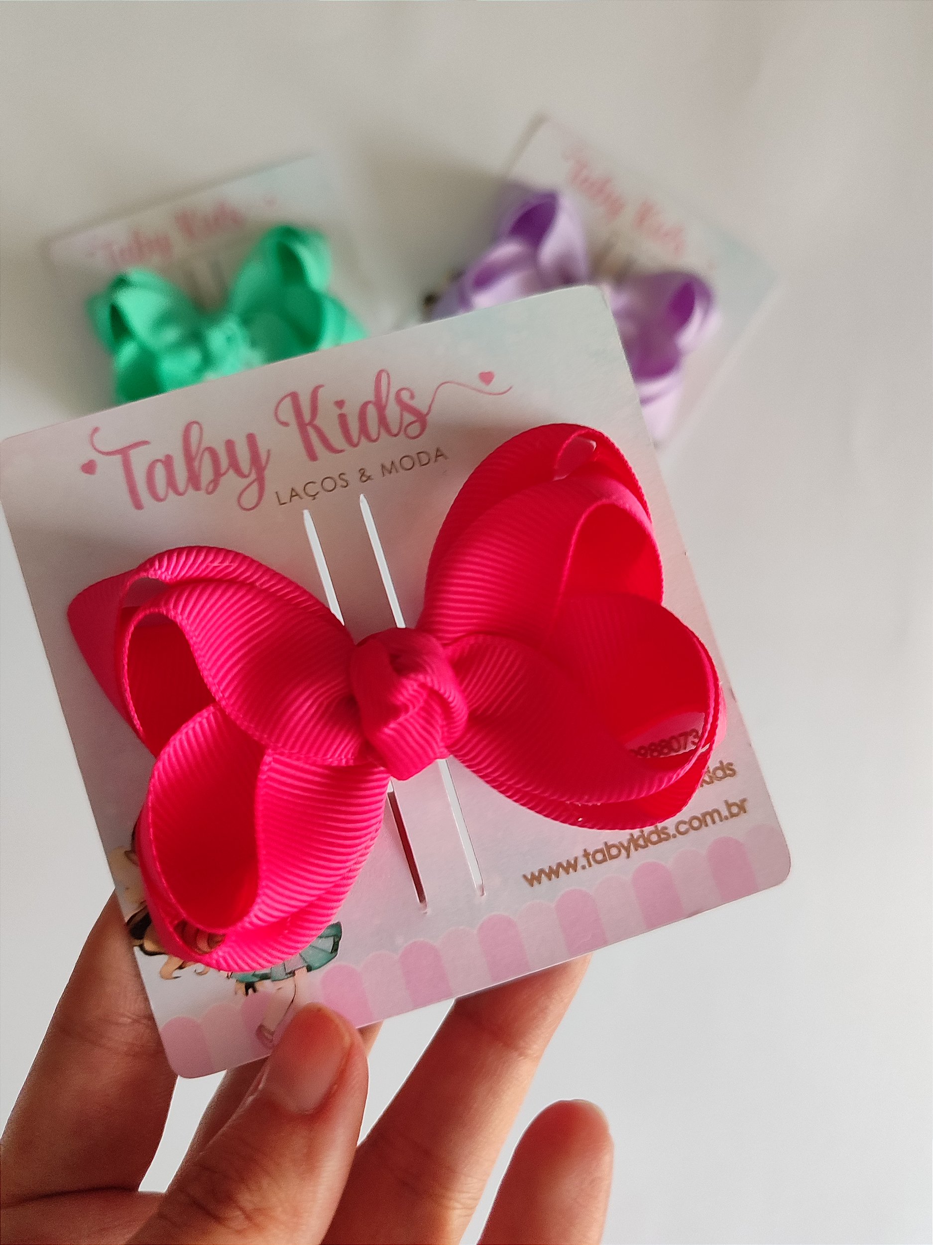 Laço medindo aproximadamente 8 cm.